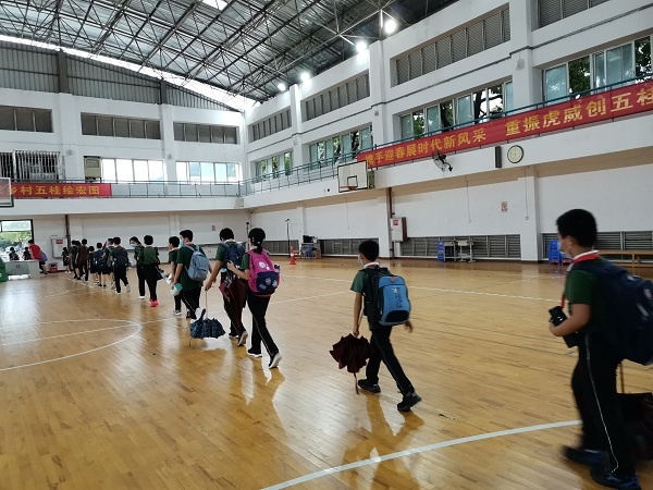 五桂山學校為孩子們返校復課做了精心的準備,各類免洗消毒液等物資一應俱全。校園生活的每一個環(huán)節(jié),校園活動的每一個細節(jié),都蘊藏著貼心的守護。走進校門,地面上張貼著清晰顯著的標識線,文明小天使和老師們早已守候在校門兩側維持秩序,時刻提醒孩子們戴好口罩,排隊時注意間隔。校門處通道內的熱成像體溫檢測儀為每一個通過的學生測試體溫。打掃干凈消毒完成的教室又迎來了朗朗讀書聲。
