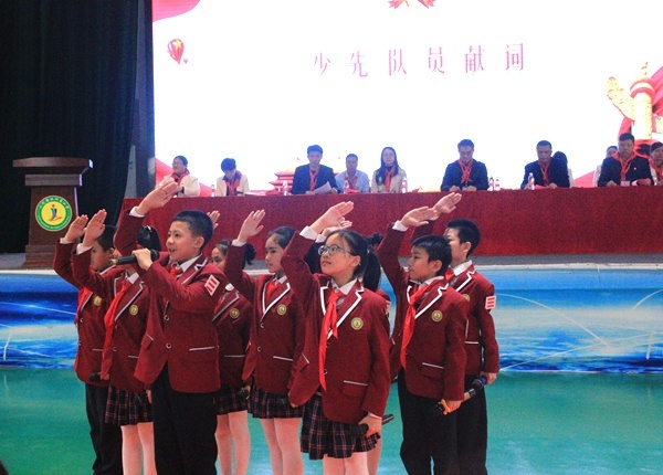 最后在大隊輔導員殷煜毅老師的帶領下,全體隊員進行了莊嚴的呼號,嘹亮鏗鏘的聲音響徹整個會場。