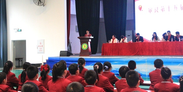 少工委一屆二次全委會后,大會閉幕式順利召開。閉幕式上主持人宣布了學校少工委一屆二次全委會的情況,并為學校新一屆少先隊大隊委授彩帶、為補選的第一屆少工委委員頒發(fā)聘書。