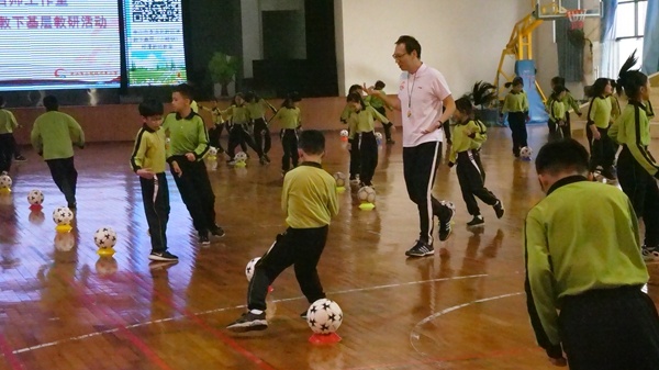 接下來是石歧中心小學劉菲老師執(zhí)教四年級《足球腳內(nèi)側(cè)傳接球》一課,劉老師不斷激勵學生進行拓展嘗試,讓學生在練習過程中漸漸學會了腳內(nèi)側(cè)傳球的動作,再進行個別指導,不斷鼓勵學生,讓學生在合作與競爭中練習,激勵學生們勇于展現(xiàn)自我,體會足球的魅力和體育的樂趣,學生在輕松愉快的體驗中完成了足球技能的學習。