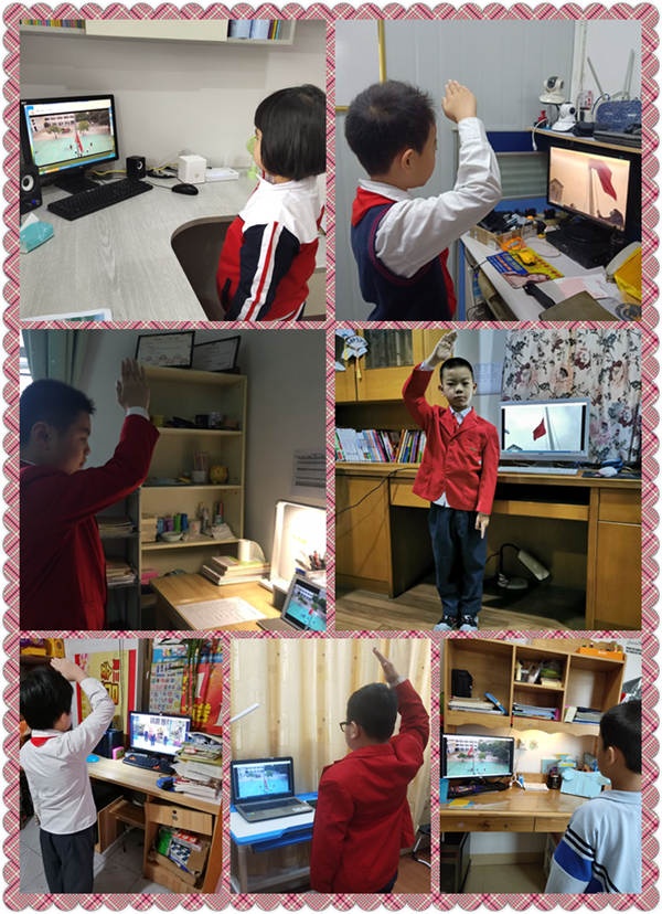 主題隊日活動以錄播視頻的形式進(jìn)行,3月29日的上午,北區(qū)小學(xué)黨支部黨員教師代表、少工委部分成員教師戴著口罩回到熟悉的校園進(jìn)行主題升旗儀式的視頻錄制工作。3月30日星期一上午8:00,全校一千多名學(xué)生穿著整齊的冬裝禮服,佩戴好紅領(lǐng)巾準(zhǔn)備參加線上的主題隊日活動。活動第一項內(nèi)容是主題升旗儀式,同學(xué)們看到熟悉的校園、熟悉的老師,心里激動不已,當(dāng)雄壯的國歌響起時,同學(xué)們面向國旗,敬隊禮唱國歌,注視著鮮艷的五星紅旗緩緩升起,心中更是激動萬分,思念校園、思念老師、思念同學(xué)的情愫油然而生!