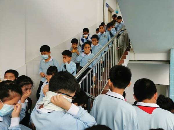 為了實(shí)施好這次演練,學(xué)校制定了詳細(xì)的消防疏散演練方案,對(duì)各班逃離的路線及每位配班老師的職責(zé)、每層樓梯口的值班老師等內(nèi)容都作了明確的規(guī)定。演練開(kāi)始前,各班主任給學(xué)生講解了逃生注意事項(xiàng)和方法。