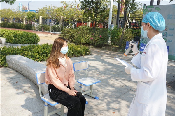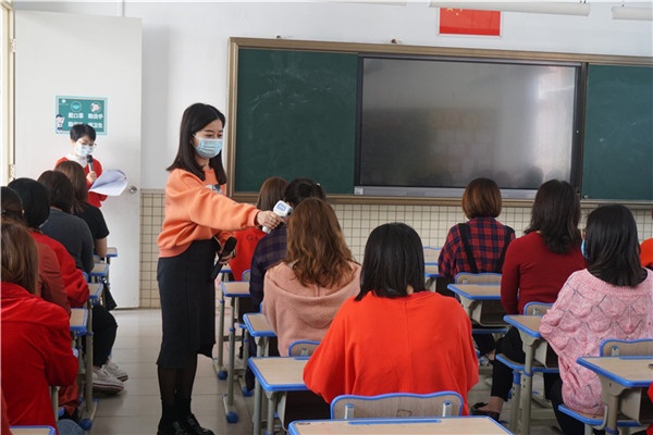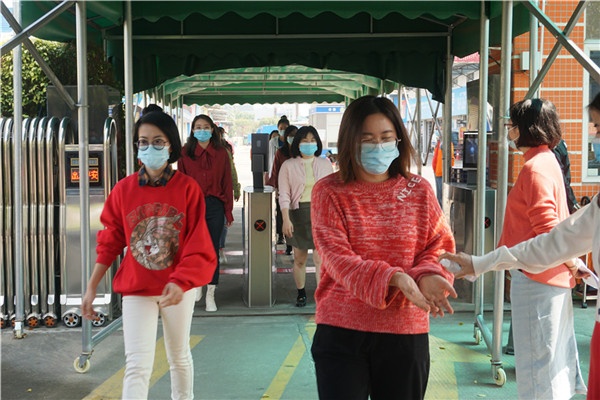 上午11時(shí)20分,在學(xué)校疫情防控工作領(lǐng)導(dǎo)小組的指導(dǎo)下進(jìn)行了演練;洪智躍主任一聲令下,演練開(kāi)始了。在學(xué)校門(mén)口進(jìn)行了進(jìn)校晨檢演練,安保人員及值日教師按開(kāi)學(xué)后的工作要求上崗,教職工佩戴口罩從正門(mén)進(jìn)入校園,人與人之間保持一米距離,依次完成測(cè)溫、手部消毒;篩查出發(fā)熱或疑似發(fā)熱人員,及時(shí)進(jìn)行妥善處理。
