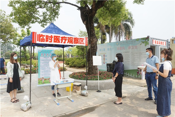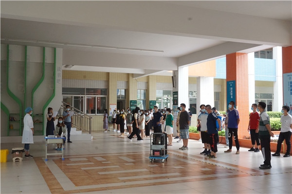 “同學(xué),你好!你的體溫偏高,現(xiàn)在額溫槍顯示為37.4℃,請再次配合檢測……體溫仍然偏高,顯示為37.4℃,請你稍等?!睘榇_保返校工作能夠平穩(wěn)有序地進行,經(jīng)學(xué)校多方籌備,8月30日上午,廣源學(xué)校舉行2020年秋季學(xué)期開學(xué)師生返校新冠肺炎疫情防控應(yīng)急處置演練,全體教職工參加了本次演練。
