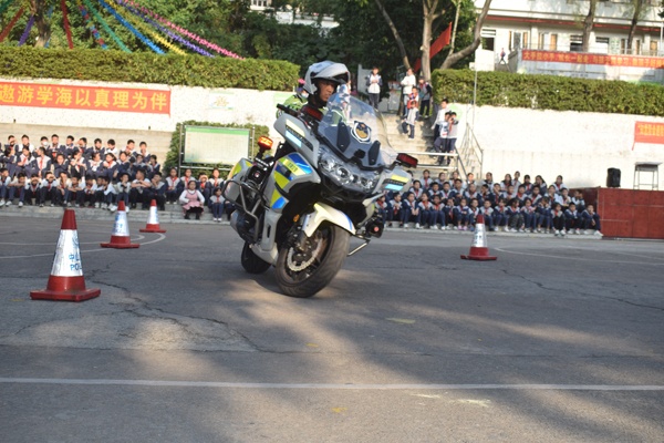 活動(dòng)最后,進(jìn)行的是“鐵騎展示和互動(dòng)”環(huán)節(jié),交警鐵騎隊(duì)員們?yōu)橥瑢W(xué)們表演了鐵騎騎行、繞樁等風(fēng)采展示,鐵騎隊(duì)英姿颯爽,一展風(fēng)采,讓現(xiàn)場(chǎng)的同學(xué)們拍手叫好、掌聲不斷。表演完畢后,鐵騎隊(duì)員們與同學(xué)們進(jìn)行了親切的互動(dòng),不少同學(xué)在鐵騎隊(duì)員的幫助下,穿戴上鐵騎日常裝備,體驗(yàn)鐵騎的工作,感受鐵騎的使命,還對(duì)鐵騎隊(duì)員提出了許許多多的心中的小疑問(wèn),鐵騎隊(duì)員都進(jìn)行了耐心回答并與同學(xué)們合影留念。