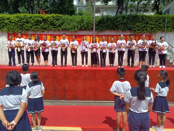 活動開始,主持人歐陽琬璇同學(xué)向全體教師致以崇高的敬意,并代表全體同學(xué)向全校老師致以節(jié)日的祝福。接著,表演隊的同學(xué)們?yōu)槔蠋煫I上了手語操表演,一首《聽我說謝謝你》帶動了全體同學(xué),現(xiàn)場歌聲歡快的旋律伴隨著手語操動作,表達著對老師的濃濃謝意。手語操表演結(jié)束后,進行的是獻花環(huán)節(jié),老師們依次上臺接受少先隊員代表的真誠獻禮,一束束鮮花綻放代表著教師的默默耕耘、辛勤付出,一張張笑臉滿懷著對老師的敬意,少先隊員代表們將花獻給老師,向老師們表達了祝福。最后,在場的全體同學(xué)共同齊聲說“老師,祝您節(jié)日快樂”,向老師送去祝福。活動在一片歡快的氛圍中結(jié)束。