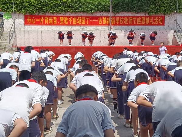 為了營造教師節(jié)節(jié)日的氛圍,弘揚尊師重教的傳統(tǒng)文化,啟迪學(xué)生的感恩心靈, 9月10日下午,古鎮(zhèn)新徽學(xué)校在操場舉行了教師節(jié)感恩獻禮活動,全校師生1千余人參加了本次活動。