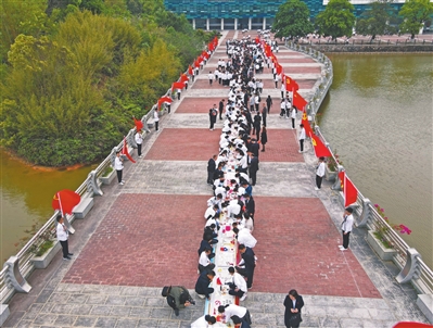 高二(29)班的黨員老師王明山帶領(lǐng)學生負責2005、2006這兩個年份的制作。2005年我國神舟六號飛船飛天。2006年我國取消農(nóng)業(yè)稅。學生葉芷延說,回顧這兩年的成就很有自豪感。因此,他們將搜集來的彩色圖片與硬卡紙剪裁、粘貼成創(chuàng)意畫,作為這兩件年份的代表。而其他班級負責的年份事件,也各出奇謀,用歷史相片、報紙剪報、卡通手繪等各種形式來表現(xiàn)。大家把各自的創(chuàng)作粘到長展板的紅色長河上,頓時讓這條歷史長河“活”了起來。這個展板還將在學校的文化廣場上進行展示。