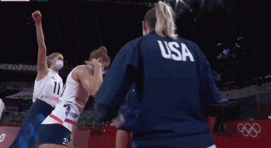 本場比賽的前兩局,中國女排打得非常頑強,但還是相繼以27-29、22-25失利。到了關(guān)鍵的第三局,或許是認為比賽已經(jīng)板上釘釘,每當美國女排得分,場邊的隊員都會跳舞慶祝。