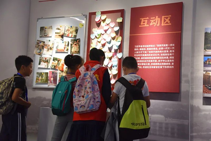 小記者參觀中山溫泉黨史教育基地互動(dòng)區(qū)。