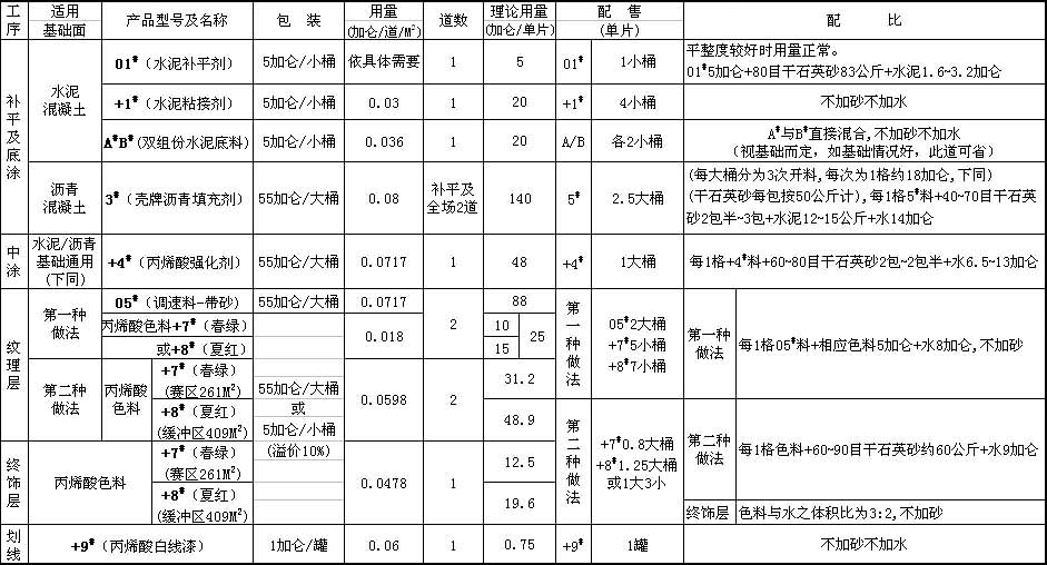 DecoTurf?(網(wǎng)球大師)硬地網(wǎng)球場670M2/片標(biāo)準(zhǔn)用量及配比