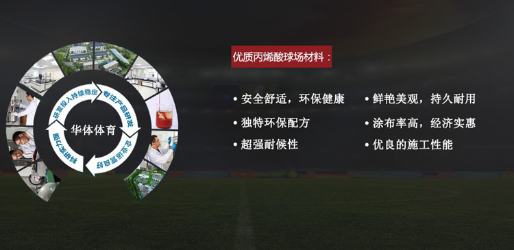 丙烯酸底中面全面升級,由華體花重金請知名高級化工教授劉信教授歷時3個月研究,于2015-3-18問世?,F(xiàn)已全面代替?zhèn)鹘y(tǒng)丙烯酸。使丙烯酸球場耐磨度提高30%,顏色細(xì)膩度提升25%,使用年限多2年。