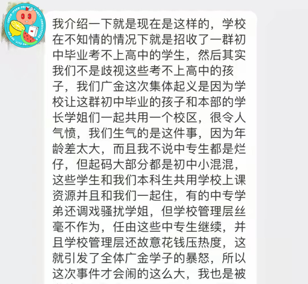 如果說,這些初中畢業(yè)生“小混混”行為只是讓本科生們不滿,另外一個原因就真的讓人難以平靜了。