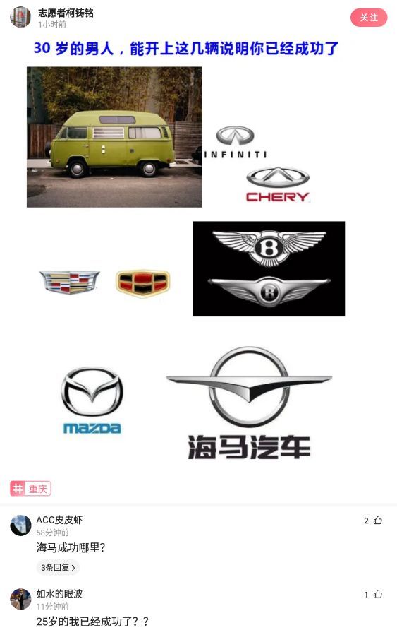 【沙雕問(wèn)題2】: 30歲的男人,能開(kāi)上這幾輛說(shuō)明你已經(jīng)成功了。