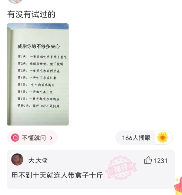【沙雕問(wèn)題7】:這些減脂有沒(méi)有試過(guò)的?