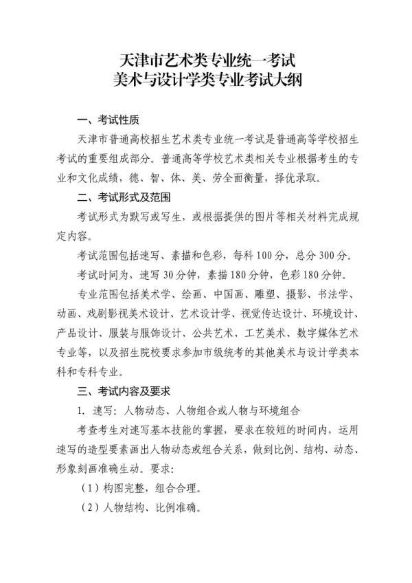 天津市藝術(shù)類專業(yè)統(tǒng)一考試大綱