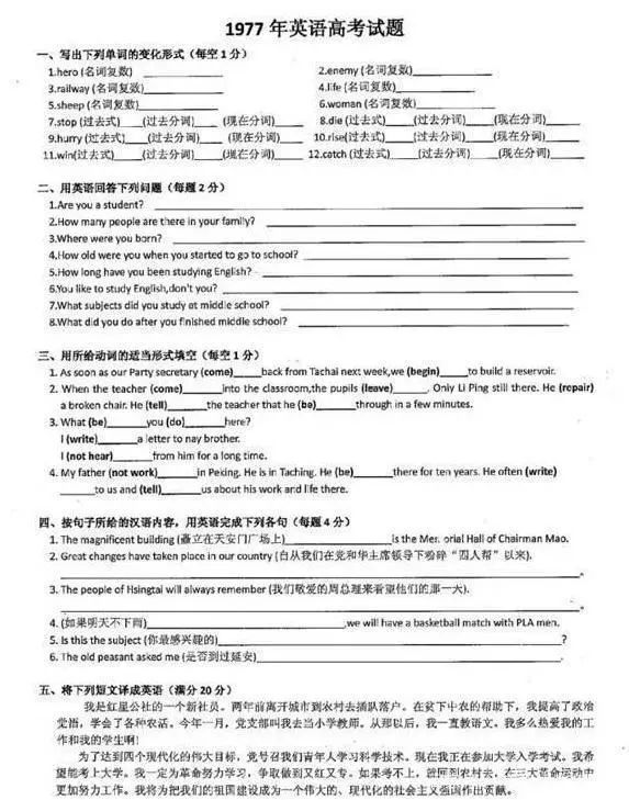 多數(shù)考察的知識(shí)點(diǎn)還都是在學(xué)生學(xué)習(xí)范圍之內(nèi)的,所以學(xué)生在做往年的高考真題時(shí)也不會(huì)覺得太難,不過當(dāng)一份1977年的高考試題擺在面前時(shí),你確定都會(huì)答嗎?
