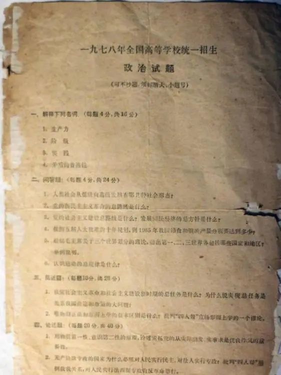 帶大家來了解一下1977年的高考試題,首先是一張政治科目的試卷,從題目量上來講就已經(jīng)讓考生很是羨慕了,如今的政治試卷想要真正答完必須洋洋灑灑的寫一大張,政治考試又是考生抱怨最累的一場(chǎng)考試。