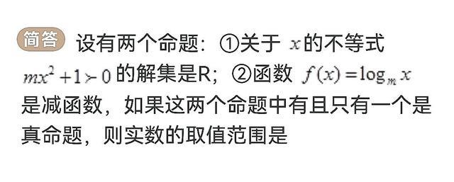 對于這種“P和Q兩個命題有且僅有一個為真,求參數(shù)取值范圍”的題目,我們通常先將P、Q兩個命題都當成真命題,分別求出此時參數(shù)的取值范圍,當命題為假時,參數(shù)取值范圍就是前面求出范圍的補集,然后再分類討論得到參數(shù)最終的取值范圍。