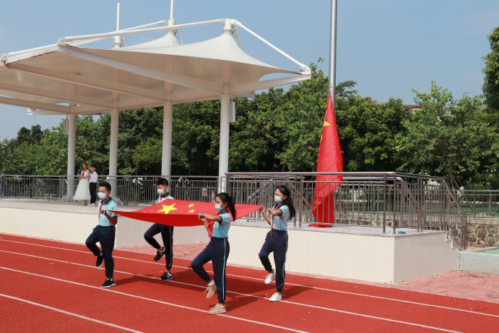 開(kāi)學(xué)季在升旗儀式中拉開(kāi)了序幕:鮮艷的五星紅旗迎風(fēng)飄揚(yáng),雄壯的歌聲激蕩在校園上空,挺拔的身姿中詮釋著勇氣和擔(dān)當(dāng),堅(jiān)毅的眼神里寫(xiě)滿(mǎn)了中國(guó)少年強(qiáng);接著,郭炳森校長(zhǎng)為寄語(yǔ)新學(xué)年:他希望全體師生要有家國(guó)情懷,新學(xué)年要有新目標(biāo),勉勵(lì)大家尚德善學(xué),身體力行,努力成長(zhǎng)為更好的自己;然后,開(kāi)展了新學(xué)期專(zhuān)題講座活動(dòng):李偉主任圍繞安全、文明禮儀等方面向全體師生進(jìn)行“同做中山人,共建文明城”助力中山創(chuàng)建文明城市;麥麗飛主任向全校師生送上最誠(chéng)摯的祝福,并指出:“習(xí)慣成就未來(lái)”倡議大家培養(yǎng)良好習(xí)慣,注重自主成長(zhǎng)。全體師生在班級(jí)收看了釘釘實(shí)況直播。