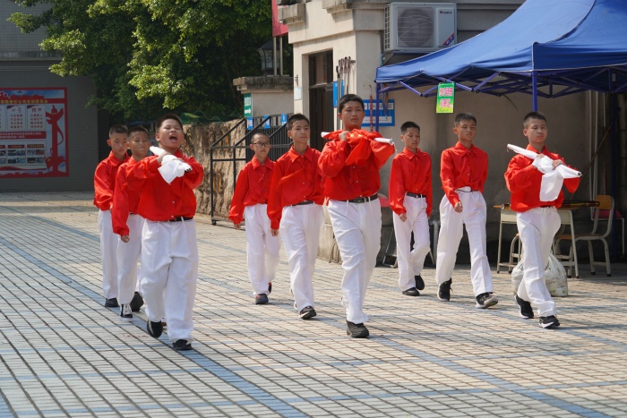 燦陽下,全體師生望著國旗冉冉升起,嚴(yán)肅敬禮,并高唱國歌,嘹亮的歌聲在美麗的校園久久回蕩。