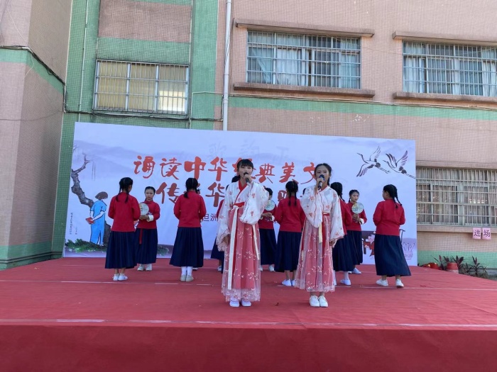 本次活動以誦讀、舞蹈、吟唱等藝術(shù)表演形式開展,賽前老師們和同學(xué)們?yōu)楸敬位顒泳木幣?,認(rèn)真訓(xùn)練。整場比賽,學(xué)生們的表現(xiàn)精彩紛呈,各具特色:有的慷慨激昂、鏗鏘有力,有的溫柔婉約、柔情似水。五、六年級學(xué)生演繹的開場節(jié)目——《少年中國說》,學(xué)生誦讀得瑯瑯上口,悅耳至極,為正式表演的開始拉開序幕。一(1)班的學(xué)生帶來的節(jié)目——《唐詩新唱》,學(xué)生們在低吟淺唱中、抑揚頓挫中詮釋了中國古典詩詞的獨特韻味。五(1)班學(xué)生帶來的歌伴舞節(jié)目——《水調(diào)歌頭.明月幾時有》,優(yōu)美的舞姿,婉轉(zhuǎn)動聽的歌聲深深印入師生們、家長們的腦海。表演中,學(xué)生們古詩誦讀字正腔圓、有板有眼,優(yōu)美的經(jīng)典詩文,精彩的誦讀表演,讓全校師生的心靈受到了國學(xué)經(jīng)典的熏陶和感染,受到傳統(tǒng)文化的洗禮,同時也彰顯了中國經(jīng)典詩文的魅力。