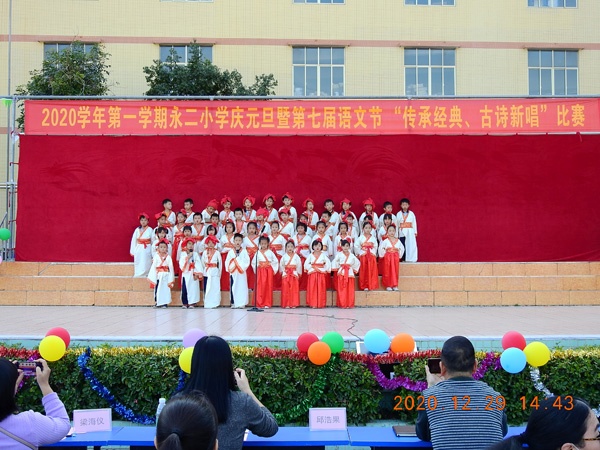 12月份,是坦洲鎮(zhèn)永二小學語文節(jié)舉行的月份。在“古詩文書法競賽”剛過不久,坦洲鎮(zhèn)永二小學的同學們還在優(yōu)秀作品展板前流連時,29日,他們又迎來了期盼已久的語文節(jié)系列活動的重頭戲——“傳承經典 古詩新唱”比賽。
