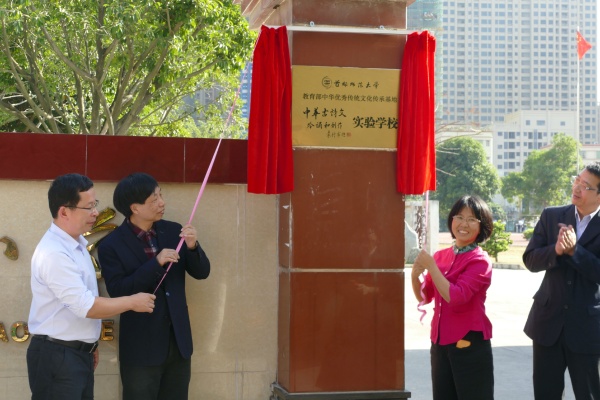 2019年11月22日下午,教育部中華優(yōu)秀文化傳承基地暨中華古詩文吟誦和創(chuàng)作實(shí)驗(yàn)學(xué)校揭牌儀式在同勝小學(xué)舉行。中山市教育學(xué)會(huì)會(huì)長陳春艷、安阜小學(xué)校長余壁峰以及同勝小學(xué)校長陳小麗共同為同勝小學(xué)揭牌。
