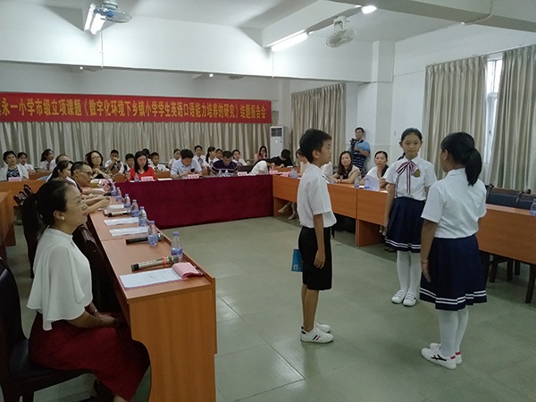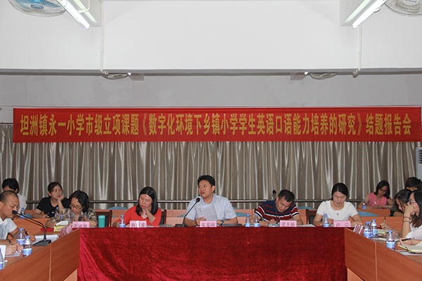6月25日下午,永一小學(xué)英語科組市級立項(xiàng)科研課題《數(shù)字化環(huán)境下鄉(xiāng)鎮(zhèn)小學(xué)學(xué)生英語口語能力培養(yǎng)的研究》結(jié)題報(bào)告會在坦洲鎮(zhèn)永一小學(xué)多媒體室舉行。中山市教研室英語教研員張?zhí)﹦偫蠋?、中山市英語課題結(jié)題工作專家組成員何旭蓉、張麗卿老師、坦洲鎮(zhèn)英語中心教研組組長盧云老師和坦洲鎮(zhèn)教育指導(dǎo)中心教研專干梁北橋老師出席了報(bào)告會并對課題的結(jié)題匯報(bào)工作作出指導(dǎo)。參加本次活動(dòng)的還有坦洲鎮(zhèn)聯(lián)片教研三組的英語教師代表、盧云工作室成員以及永一小學(xué)課題組全體成員。