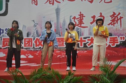 在陳偉豪老師的帶領(lǐng)下,全體新團員面向團旗,莊嚴宣誓,并齊唱團歌:“光輝的火炬,喚起了民族的覺醒”,“壯麗的事業(yè),激勵著我們既往開來”。一句句雄壯而又滌人心胸的歌詞在校園里飄蕩,感染了在座每一個熱血青年。