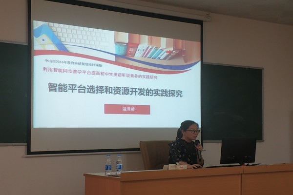 隨后,溫清嬌、廖倩與藍(lán)桂花老師分別做了題為《智能平臺(tái)選擇和資源開發(fā)的實(shí)踐探究》、《整合平臺(tái)多元資源 提高學(xué)生口語(yǔ)能力》、《利用智能平臺(tái)特色功能提高學(xué)生的聽說能力》的講座,從理論與實(shí)踐層面分享了利用智能同步教學(xué)平臺(tái)提高學(xué)生聽說素養(yǎng)的策略。