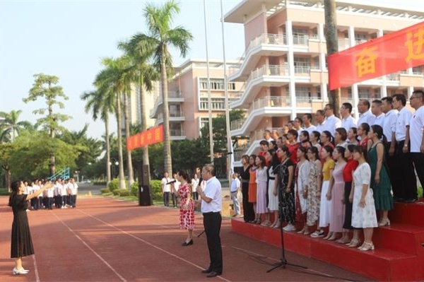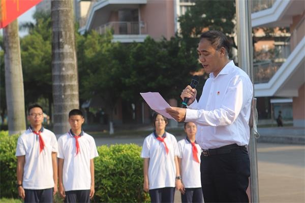 學(xué)校黨支部書記、校長梁格青在國旗下做主題講話,回望新中國歷史,70年風(fēng)雨兼程,70年砥礪奮進(jìn),70年接續(xù)奮斗,在中國共產(chǎn)黨的領(lǐng)導(dǎo)下,中華民族迎來了從站起來、富起來到強(qiáng)起來的偉大飛躍,中華大地發(fā)生了翻天覆地的歷史性巨變。梁校長寄語同學(xué)們立志報(bào)國,將自己的“青春夢(mèng)”與“中國夢(mèng)”相結(jié)合,投身偉大祖國建設(shè),創(chuàng)造更多更大的輝煌。
