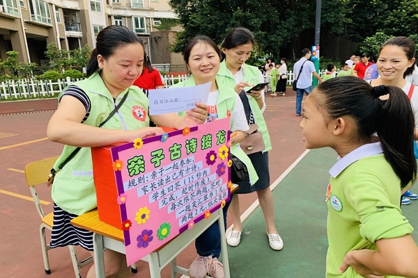 首先,孩子和家長(zhǎng)們參與了老師精心策劃的游戲——親子猜謎語(yǔ)、親子古詩(shī)接背、親子成語(yǔ)接龍、親子心有靈犀、20秒親子踢毽子、親子投球、趕“鴨子”進(jìn)籠等游戲,賺取了屬于自己的匯翠幣。