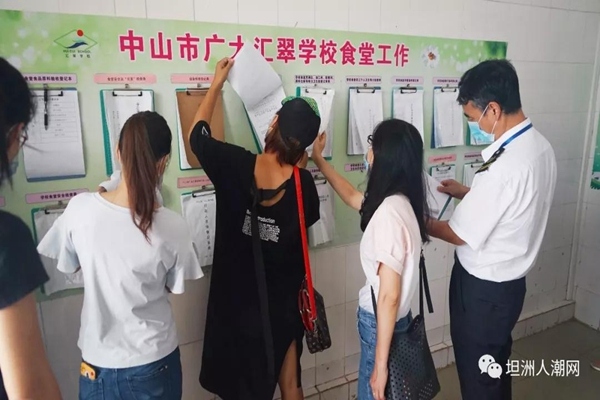 為更真實了解學(xué)校餐飲安全與衛(wèi)生管理工作,確保師生的日常飲食安全,2019年6月27日上午,坦洲鎮(zhèn)食品藥品監(jiān)督所梁偉洪所長帶領(lǐng)執(zhí)法部門人員及市民一行12人,到中山市廣大匯翠學(xué)校食堂進(jìn)行突擊檢查。