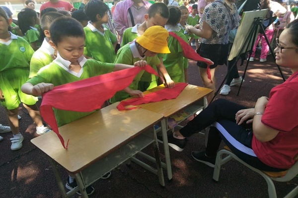 第二個(gè)議程是自由活動(dòng)——參加能力大考驗(yàn)。老師們精心準(zhǔn)備了“我會(huì)系紅領(lǐng)巾”、“我會(huì)疊被子”、“我會(huì)綁鞋帶”、“我有一雙干凈的小手”、“我會(huì)整理書包”、“我會(huì)疊衣服”“、“我會(huì)綁跳繩”、“我會(huì)整理課桌”8個(gè)項(xiàng)目來考驗(yàn)孩子們的生活自理能力。當(dāng)不少家長(zhǎng)發(fā)現(xiàn)孩子疊被子有困難時(shí),都及時(shí)的耐心指導(dǎo),不僅提高了孩子們的自立能力,同時(shí)也讓家長(zhǎng)意識(shí)到生活中應(yīng)該養(yǎng)成好習(xí)慣。