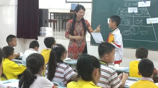 2018年10月11日,坦洲盧云名師工作室主持人、坦洲合勝小學(xué)副校長盧云應(yīng)邀來到華特雅學(xué)校,給老師們展示了一節(jié)精彩的英語示范課。盧云老師當(dāng)節(jié)課的教學(xué)內(nèi)容是六年級上冊第三單元的閱讀課《Unit 3 Staying Healthy (More Readig &Writing)》。上課前,盧老師以和藹親切的態(tài)度接近學(xué)生,很好地拉近了師生之間的距離。在課堂教學(xué)過程中,盧老師用飽滿的熱情去帶動學(xué)生,引導(dǎo)學(xué)生在愉快、寬松的學(xué)習(xí)氛圍下學(xué)習(xí)英語。憑借著一首“燃燒我的卡路里”的歌曲,全班學(xué)生迅速進入上課狀態(tài)。盧老師播放的各種食物幻燈片,很好地貼近學(xué)生的興趣,激活了學(xué)生的背景知識。在接近學(xué)生的語境下,盧老師還以她過硬的教學(xué)基本功,在黑板上畫上了栩栩如生的蔬菜、奶酪和肉類,讓學(xué)生更直觀地理解閱讀文本,完成課本上的習(xí)題。最后,盧云老師利用一個“自助餐”的餐盤活動,進一步進行教學(xué)延伸,學(xué)生反饋熱烈,表現(xiàn)積極,進入了自然的學(xué)習(xí)狀態(tài),學(xué)習(xí)熱情和學(xué)習(xí)效率得到了空前的高漲。