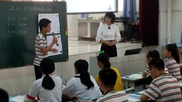 高艷玲老師當(dāng)節(jié)課教學(xué)的是初中三年級(jí)數(shù)學(xué)《幾何圖形的最大面積》,整節(jié)課包括回顧思考、合作交流、拓廣探索、方法歸納、課堂總結(jié)等幾個(gè)環(huán)節(jié)。課堂教學(xué)過(guò)程環(huán)環(huán)相扣、逐步推進(jìn),通過(guò)充分的師生互動(dòng)、生生互動(dòng),構(gòu)建了一個(gè)平等自由的對(duì)話平臺(tái),全班學(xué)生處于積極、活躍、自由的學(xué)習(xí)狀態(tài)。課堂上,教師通過(guò)設(shè)置巧妙的數(shù)學(xué)情境和課堂問(wèn)題,充分調(diào)動(dòng)學(xué)生的學(xué)習(xí)積極性和主動(dòng)性,學(xué)生在合作交流中充分地表達(dá)、爭(zhēng)辯,很好地鍛煉了創(chuàng)新思維能力,學(xué)生真正成為課堂的主體,積極參與到教與學(xué)的互動(dòng)過(guò)程中來(lái),并在這個(gè)過(guò)程中實(shí)現(xiàn)知識(shí)和能力的雙豐收。