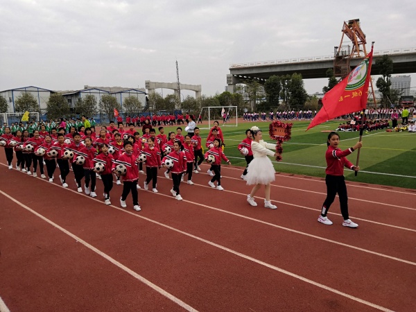 早上8:00,運(yùn)動(dòng)會(huì)入場(chǎng)式在《運(yùn)動(dòng)員進(jìn)行曲》中拉開(kāi)了序幕。走在最前面的是學(xué)校彩旗隊(duì),由各班挑先的成員組成。高遠(yuǎn)的藍(lán)天,紅的跑道,綠的草坪,鮮艷的彩旗,在金色的陽(yáng)光下,構(gòu)成了一幅絕美的畫(huà)卷???,四1班的孩子們走過(guò)來(lái)了,他們身著特色班服,邁著整齊的步伐,喊著響亮的口號(hào),手持足球,精神抖擻地走過(guò)主席臺(tái)。六1班的大哥哥大姐姐們也走過(guò)來(lái)了,他們的口號(hào)與眾不同“發(fā)型高貴,氣質(zhì)到位,全場(chǎng)吶喊,六1萬(wàn)歲!”全場(chǎng)忍俊不禁。