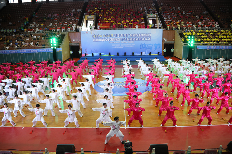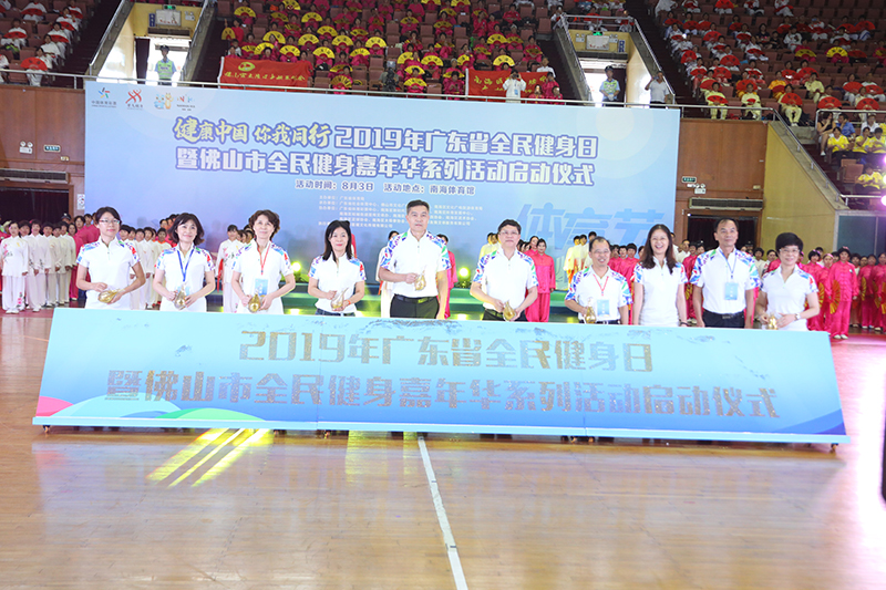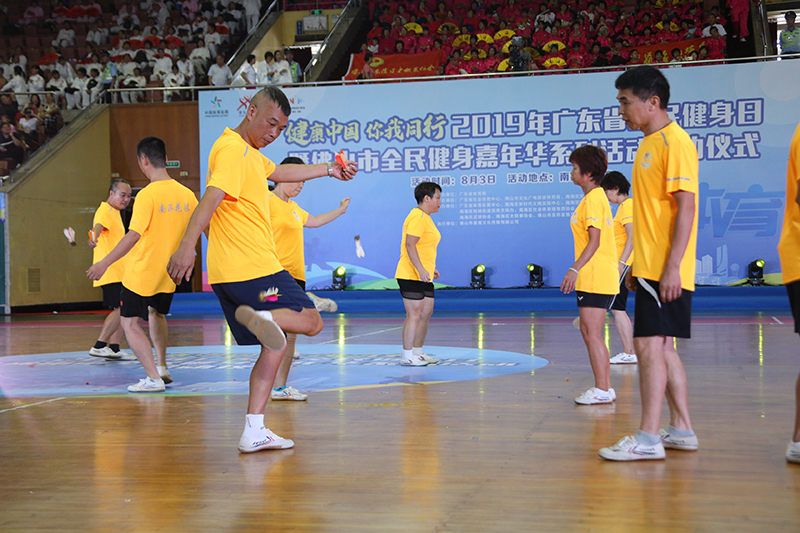 啟動儀式及節(jié)目表演現(xiàn)場,近600名來自廣州市和佛山市南海區(qū)的群眾代表以舞龍舞獅、健身氣功、太極、健身操、花式毽球、廣播體操等體育健身活動展示的形式,共同為2019年廣東省“全民健身日”活動拉開帷幕,大力宣傳全民健身,吸引更多群眾主動參與健身。