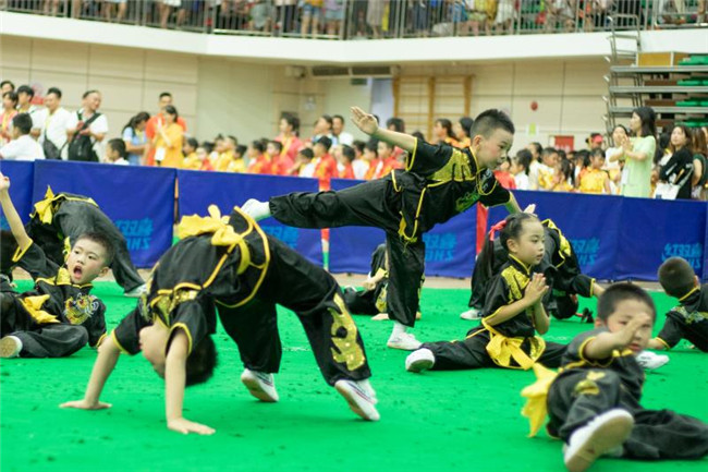 本屆嶺南武術(shù)文化周舉行了首屆廣東省幼兒武術(shù)嘉年華和“中國武術(shù)段位制”初段位考評賽的比賽。賽場上,最吸引眼球的無疑是來自全省各地幼兒園的2000多名小朋友的武術(shù)表演,他們當中年齡最小的只有三歲。今年幼兒組設(shè)置了五步拳、初級一路長拳、自編拳術(shù)、長器械、短器械等基礎(chǔ)套路,以及集體項目的表演。別看選手們年紀都這么小,一張張小臉上卻是精氣神十足。一招一式有板有眼,看著他們童趣十足卻又一絲不茍的表演,讓人不禁深受感染。比賽優(yōu)勝者還將獲得獎牌和相應的武術(shù)技術(shù)等級證書。