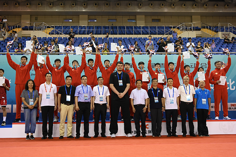 賽后頒獎儀式,興奮的深圳新世紀隊員、教練員手牽手躍上最高領(lǐng)獎臺,全場掌聲雷動。中國籃球協(xié)會主席姚明親自為小伙子們頒發(fā)金牌并合影留念,廣東省體育局副局長許建平亦到場向球隊道賀。
