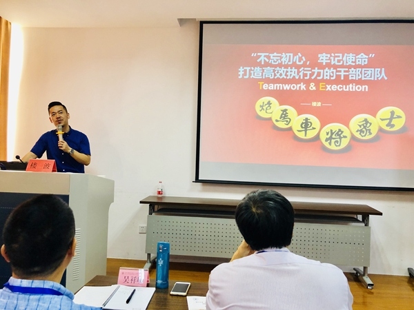 開(kāi)班第一課由杭州嘜思文化傳播有限公司樓波董事長(zhǎng)開(kāi)講。樓老師貫穿著“不忘初心、牢記使命”的主題,通過(guò)“團(tuán)隊(duì)”的解讀、唐僧團(tuán)隊(duì)的角色分析、全班笑一笑小測(cè)驗(yàn)、一條短信的處理方式、修改地名、曾國(guó)藩等典故或游戲與大家分享了高效團(tuán)隊(duì)執(zhí)行力“思想決定態(tài)度”、“態(tài)度決定行為”、“行為影響結(jié)果”這三個(gè)要素,寓教于樂(lè)、深入淺出、旁征博引地與大家共同探討了團(tuán)隊(duì)管理中守初心、擔(dān)使命、抓落實(shí)的智慧和藝術(shù),讓大家受益匪淺。