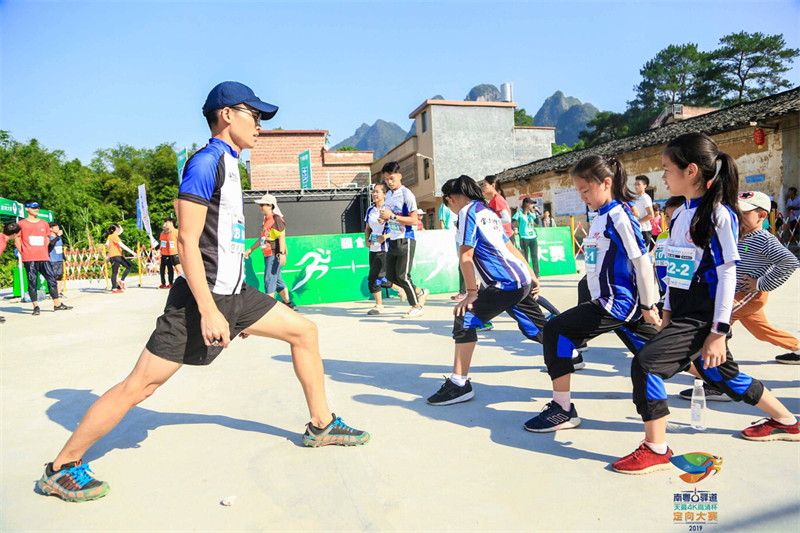 水口秦漢古道有大量石板路,保存完好,道路旁翠綠的田園、古舊的民居,構(gòu)成一幅淡雅清秀的山水畫卷,因此也是徒步登山者的樂園。22日上午,就有約400名徒步登山愛好者齊聚秦漢古道水口段,進(jìn)行全長約8公里的徒步活動。兩項不同的體育活動,都以南粵古驛道為載體同步舉行,陽山動感無限。