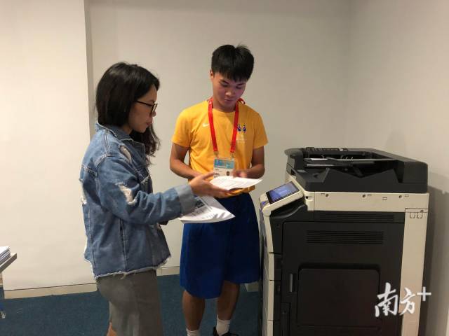 2分鐘時(shí)間,13場(chǎng)比賽,每場(chǎng)5份不同的數(shù)據(jù)表,上百人的媒體工作者,這是M數(shù)據(jù)遞送助理每天最緊張的兩分鐘。這個(gè)交接的瞬間幾乎每天都在發(fā)生,但宣傳部攝影師嘗試了好多次都沒(méi)有抓到這個(gè)畫(huà)面。志愿者洪海峰說(shuō)“我們得搶時(shí)間,每次上樓一轉(zhuǎn)身就看不到攝影師了”。
