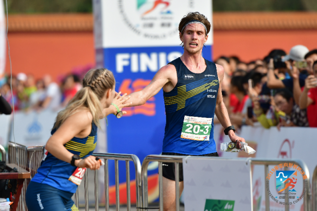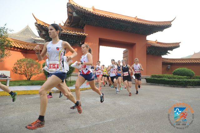 10月27日在南海影視城進行的比賽有兩場,首先進行的是定向世界杯決賽短距離混合接力賽。短距離混合接力賽是團隊賽,考驗團隊的實力和配合度,由四人組成的團隊“短兵相接”,最先通過終點者勝出。接力賽變數(shù)較多,成績可預見性低,從而也成就了其觀賞性強的特點,無論是參賽選手還是觀眾都能很好地感受到比賽激烈緊張的氣氛。此外,與第一場在西樵山進行的中距離賽不同,本場短距離混合接力賽所在的場地地理條件限制少、可跑性也較強。