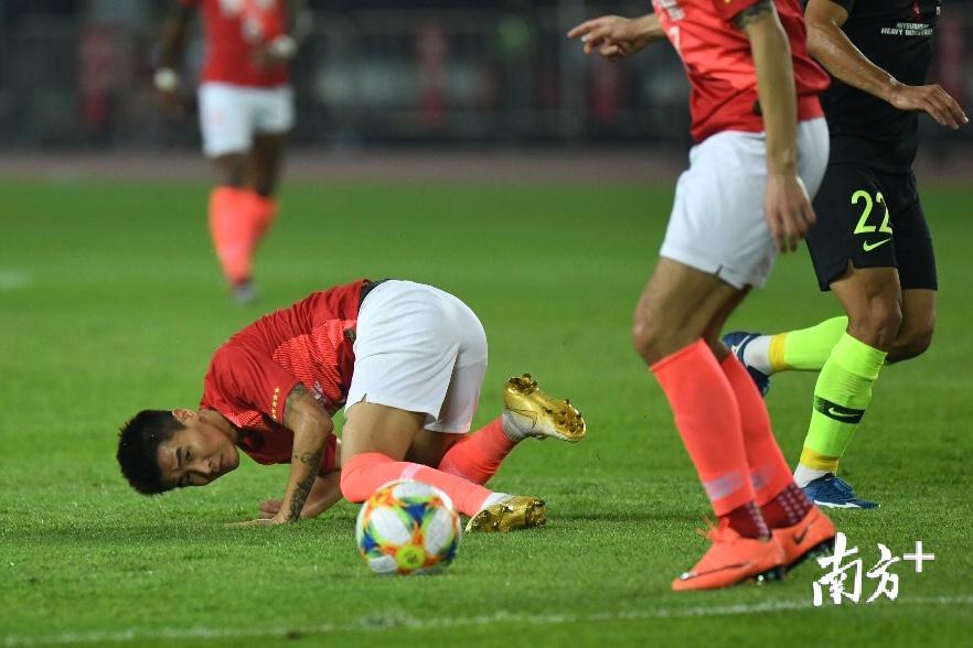 郜林艱難突破。失球后,廣州恒大瘋狂反撲,但依然無法撼動對手防守陣線。