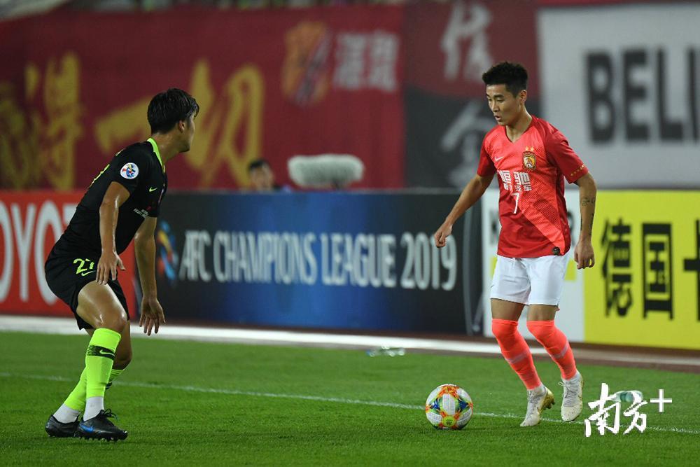 韋世豪面對防守球員,準(zhǔn)備突破。本場比賽,韋世豪所在的恒大左路相當(dāng)活躍,多次制造攻勢。