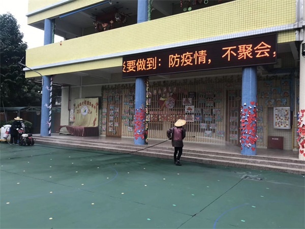社會支持共同“抗疫”。中山市彩虹義工隊(duì)為濠涌小學(xué)、虎遜小學(xué)、象角小學(xué)、沙溪中學(xué)、溪角中學(xué)等多所學(xué)校義務(wù)消毒,為開學(xué)復(fù)課做好準(zhǔn)備。中山市余樂琴行為中心小學(xué)、港園小學(xué)各捐贈10箱消毒液等等。