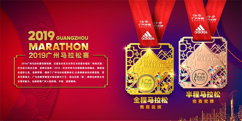 據(jù)透露,今年的廣州馬拉松賽獎牌由六福珠寶傾情贊助,以富含歷史文化和藝術(shù)欣賞價值的“嶺南花窗”作為主設(shè)計元素。獎牌正面將“2019”年份字樣與花窗圖案自然融合,展現(xiàn)流光溢彩之美。獎牌背面,鐫刻了廣州馬拉松賽事標(biāo)記,記錄著跑者的完賽里程,更具專屬意義。廣馬完賽獎牌首次嘗試鏤空工藝,透過一扇“窗”,映照出嶺南古色古香的魅力,也映射著廣州人的積極、開放、進(jìn)取精神。今年廣馬的戰(zhàn)袍也在發(fā)布會上正式亮相,參賽服采用男子背心、女子T恤的樣式,服裝整體風(fēng)格時尚簡約、活力十足。