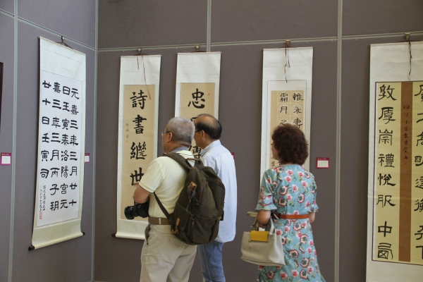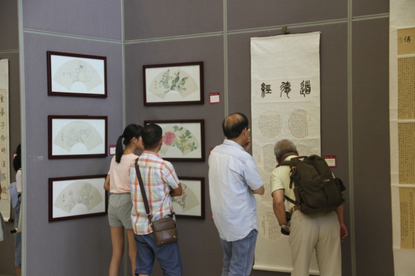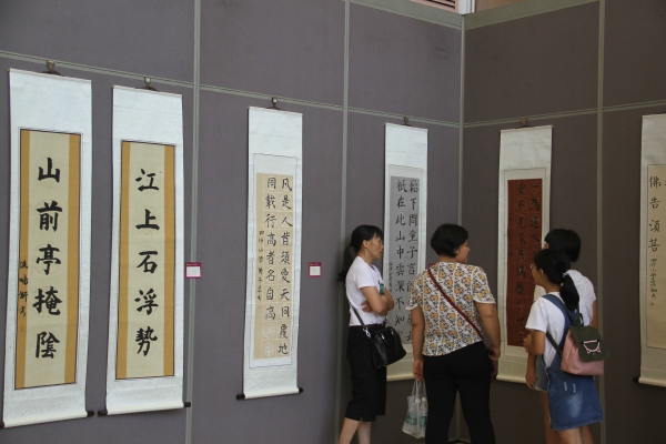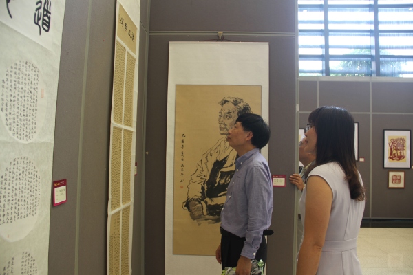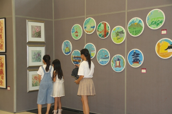 據(jù)歐慧芳現(xiàn)場(chǎng)介紹,該校一向重視藝術(shù)教育,秉承“以藝立品,學(xué)藝助學(xué)”的藝術(shù)教育方針,加強(qiáng)師資隊(duì)伍建設(shè),打造了一支德藝雙馨的高素質(zhì)專業(yè)教師隊(duì)伍;注重藝術(shù)室場(chǎng)配備,美書學(xué)科專任教師均配備個(gè)人工作室;致力教育科研提升,美術(shù)學(xué)科有省、市、鎮(zhèn)級(jí)的立項(xiàng)課題正在研究,營(yíng)造了濃郁的藝術(shù)教育教學(xué)氛圍。這次書畫展從7月10日開始至21日結(jié)束。展出的作品,除了有書畫界老前輩們的特邀書法作品外,其余的都是師生們的作品,有書法、國(guó)畫、剪紙、簡(jiǎn)筆畫和線描畫。這是師生們辛勤勞動(dòng)的成果。這次書畫展,